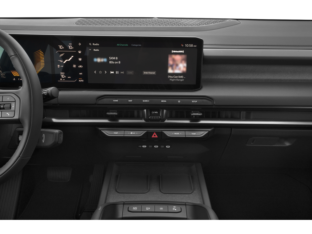 - Radio: AM/FM Audio System -inc: 12.3" center infotainment w/navigation, wireless Apple CarPlay and Android Auto, SiriusXM, Bluetooth® w/voice recognition, 14 speakers Meridian audio system, 10" subwoofer, passenger talk, Wi-Fi hotspot, Kia Connect, Over-the-Air update capability and 1 data USB-C port in front row